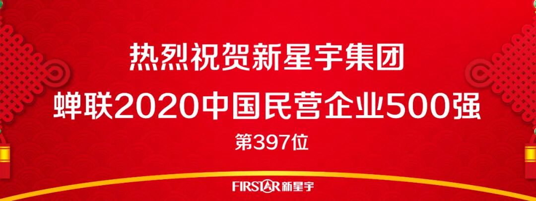 三度蝉联,持续进阶。会上,万众瞩目的“2020中国民营企业500强”系列榜单荣耀揭晓,新星宇集团入围中国民营企业500强,排名第397位。比19年排名提升10位,比18年排名提升26位。