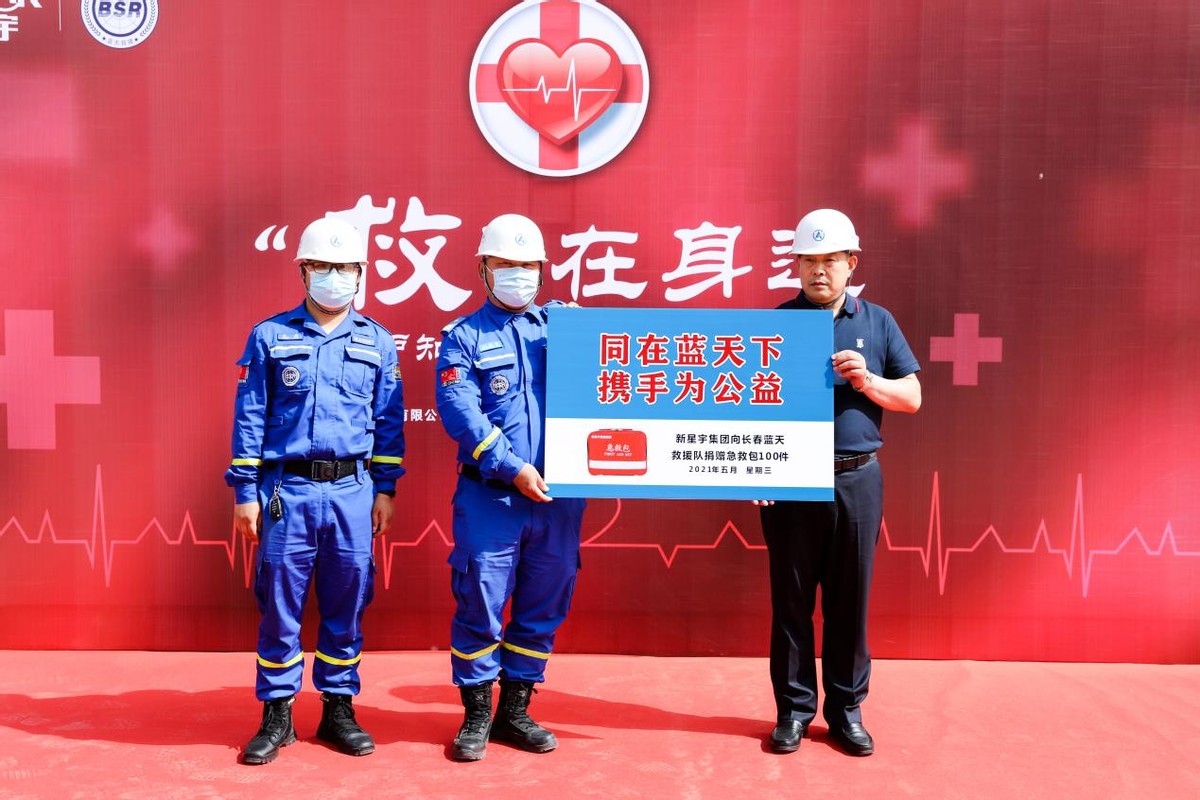 (新星宇工建集团总经理向长春蓝天救援队捐赠物资)